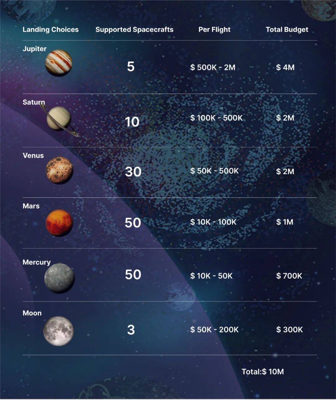 So how can we support your adventurous spirit? What can we do to make our journey a success? What awaits you when you land on your planet of choice. Whilst we only have limited space available, each selected project will be eligible for rewards to help them succeed. See the landing and flight plans below.