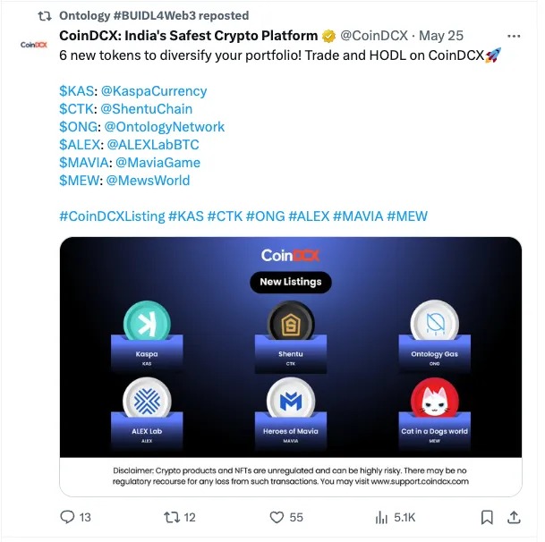 • ONG Listing by CoinDCX: One of India’s leading exchanges, CoinDCX, has listed ONG, expanding our reach within the Indian market.