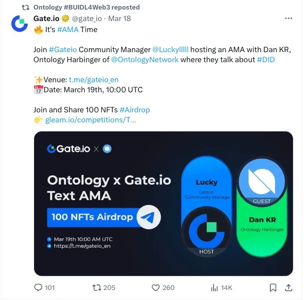 - Gate.io’s AMA with Dan: Ontology’s harbinger Dan introduced Ontology and its vision during an AMA session on Gate.io.