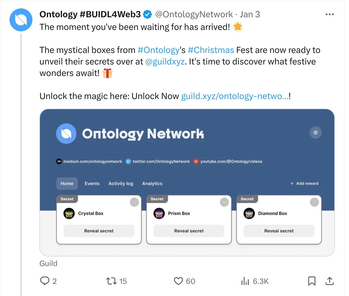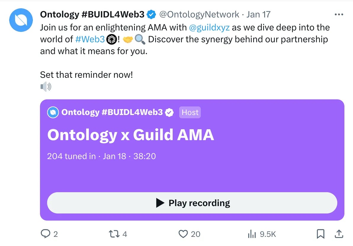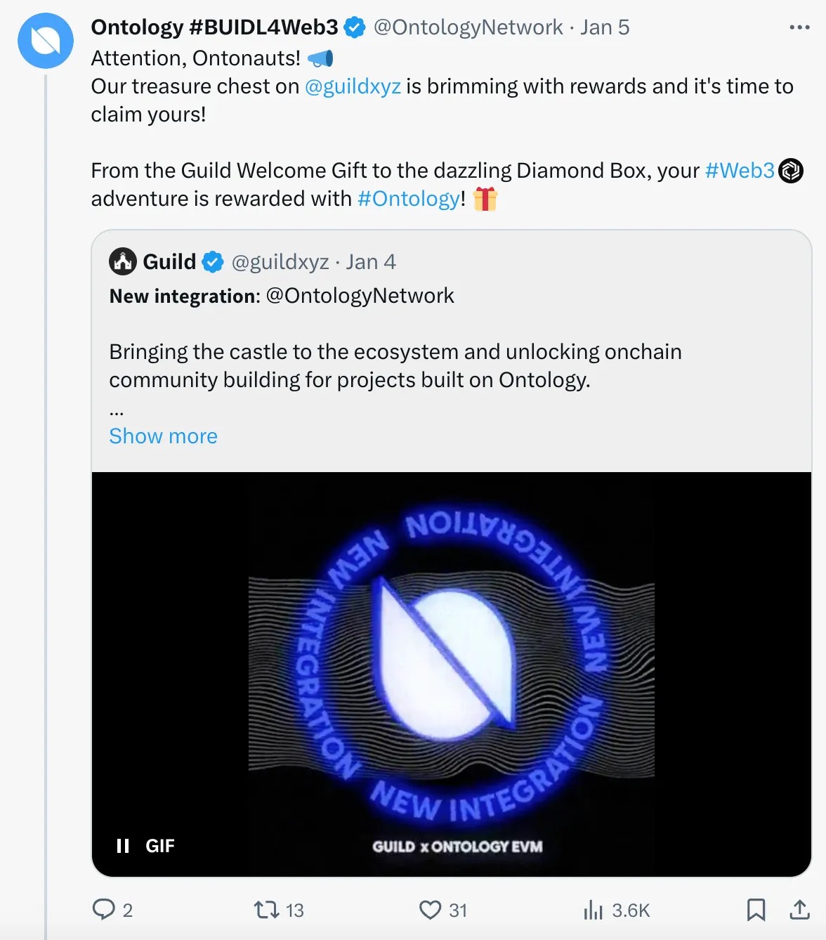 - Guild Integration: Guild has integrated Ontology EVM! Now you can mint exclusive Guild pins of Ontology. 🎖️