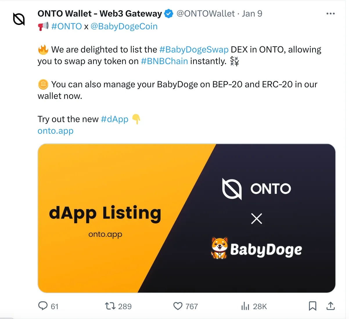 - BabyDOGE Listing: Exciting news! ONTO has listed BabyDOGE, expanding our array of digital assets. 🐶