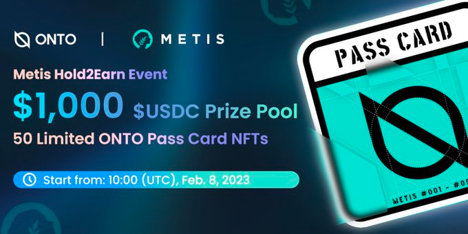 - ONTO partnered with Metis to host a Hold2Earn event, with prizes of $1,000 USDC + 50 ONTO Pass Card as rewards.