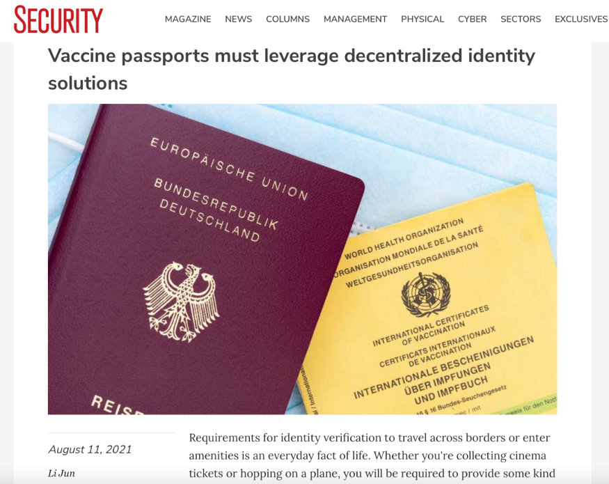 - “Vaccine passports must leverage decentralized identity solutions” was published in Security Magazine by Li Jun, Founder of Ontology. The article explored how decentralized identity can address data and privacy issues in the medical domain.