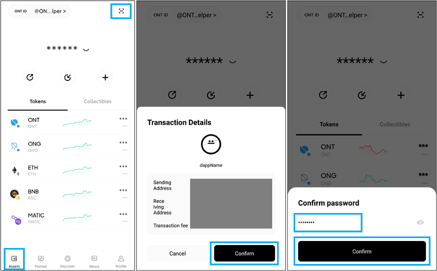 -Click “Confirm” in the transaction details pop-up window, enter your ONT ID wallet password, and then click “Confirm” to finish.