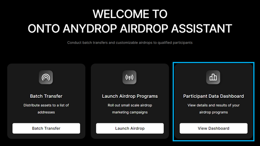 -On the “Participant Data Dashboard” page, click “Airdrop” to check and manage a saved airdrop program.