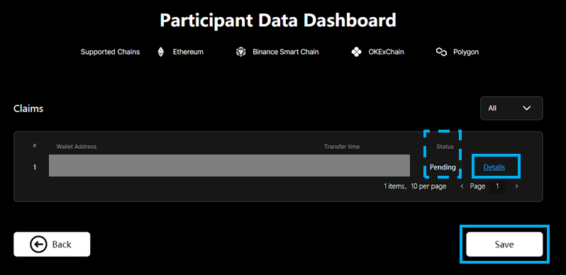 -On “Participant Data” page, click Details to approve or reject the claim, then the status of the claim will be changed to passed or rejected.