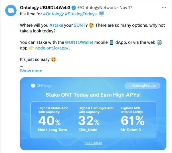 - Staking Success: Exciting news for ONT stakers! Our APR skyrocketed to an impressive 61%! A fantastic opportunity for those looking to maximize their investments. 📈