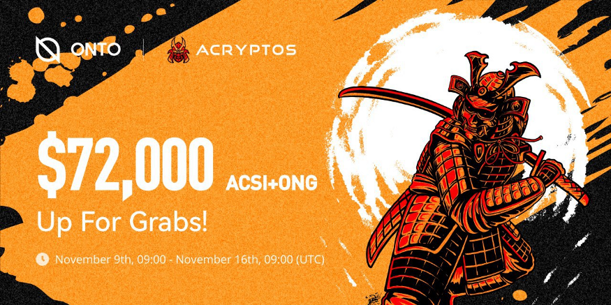 - ONTO hosted a campaign with ACryptoS (BSC). The first 75 participants and top 20 participants who stake the most will receive the highest tier of rewards. The first 100 new ONTO users participating in the event will receive additional rewards. The activity is in progress and will end at 17:00 (Singapore time) on November 16th.
