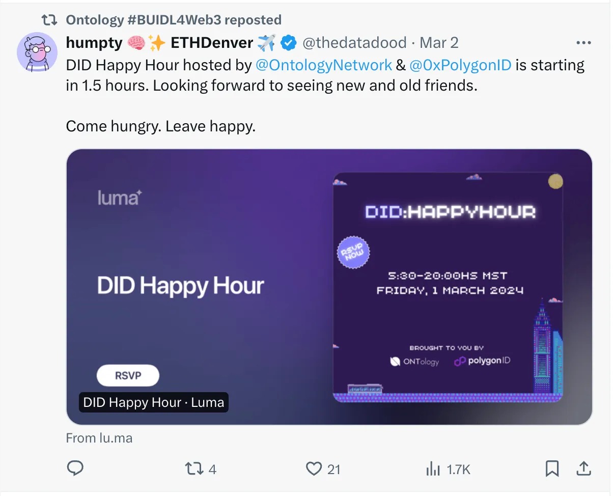 This week at Ontology has been buzzing with activities and progress across various fronts. From our engagement at ETH Denver to the hunt for the best Web3 blog, let’s take a closer look at what’s been happening.🎉