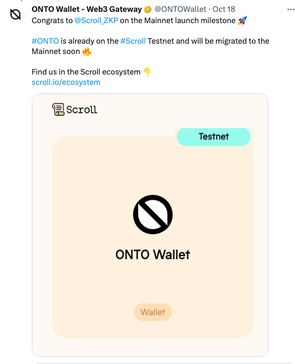 We’re thrilled to announce that ONTO Wallet will soon be available on Scroll mainnet. Keep an eye out for this exciting development!