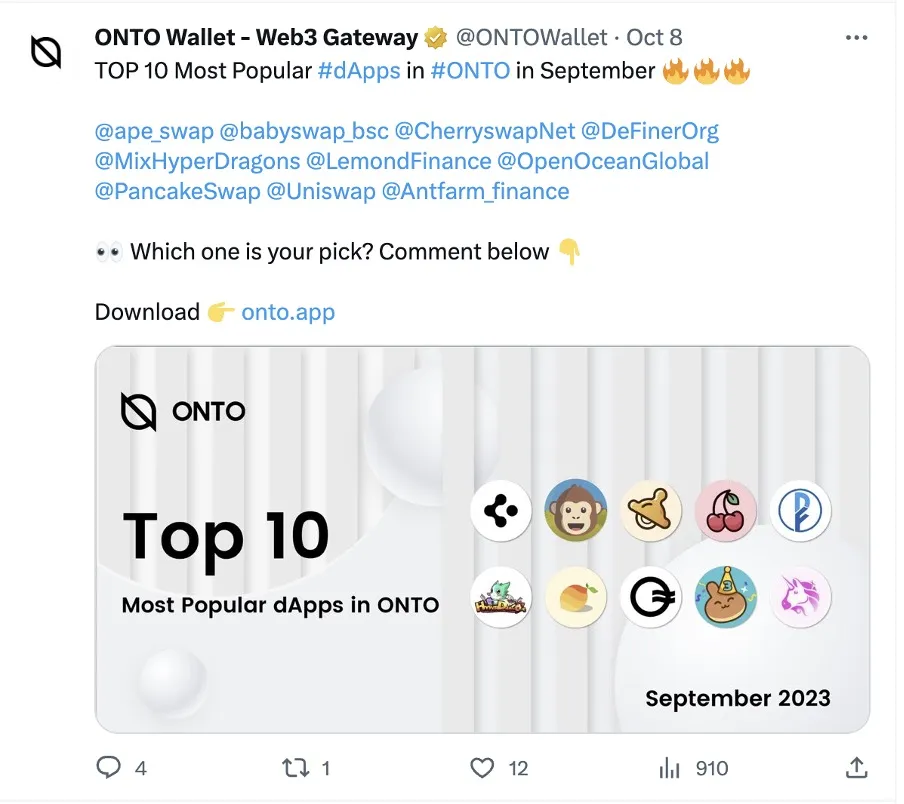 - 🏆 Revealed the Top 10 most popular DApps in ONTO!