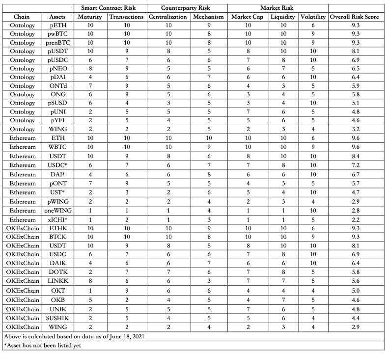 The world of DeFi is a highly complex and interconnected ecosystem. Risks affecting one aspect of the system may have the potential to impact dependent subsystems. Assets (e.g. WING, ONT, ONG) are at the heart of the Wing protocol as they enable operations and secure the assets and liabilities of the protocol.
