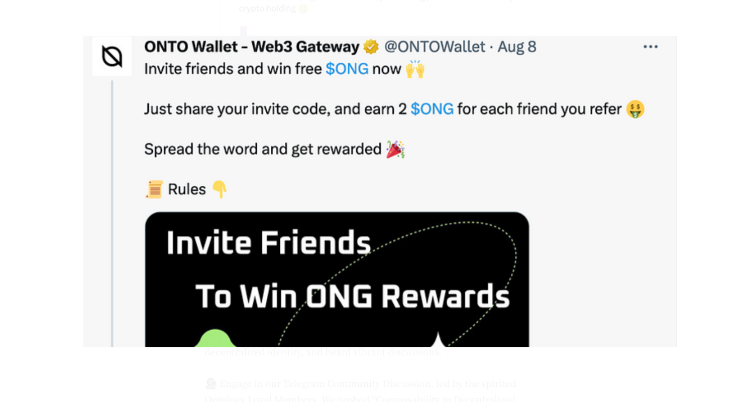 🔹 Unlock the secrets of the ONG reward activity that’s all about inviting new users and spreading the Ontology magic.