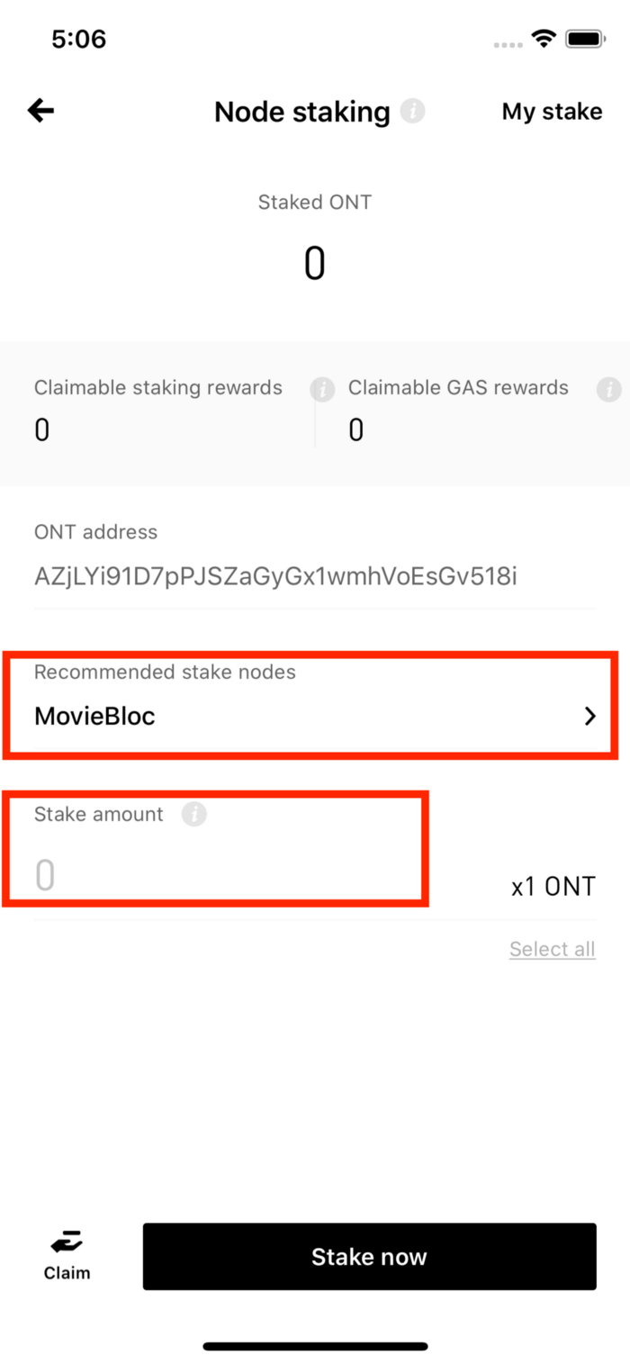Please note: If you would like stake just 1 ONT, please enter “1” and click the “Stake now” button. Enter your password to confirm the authorized stake is complete.