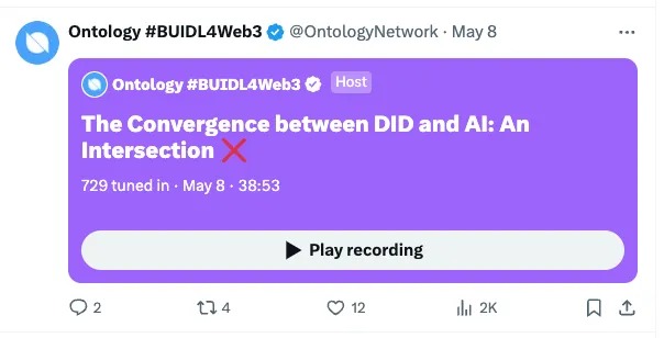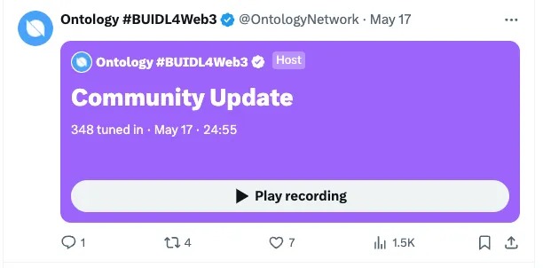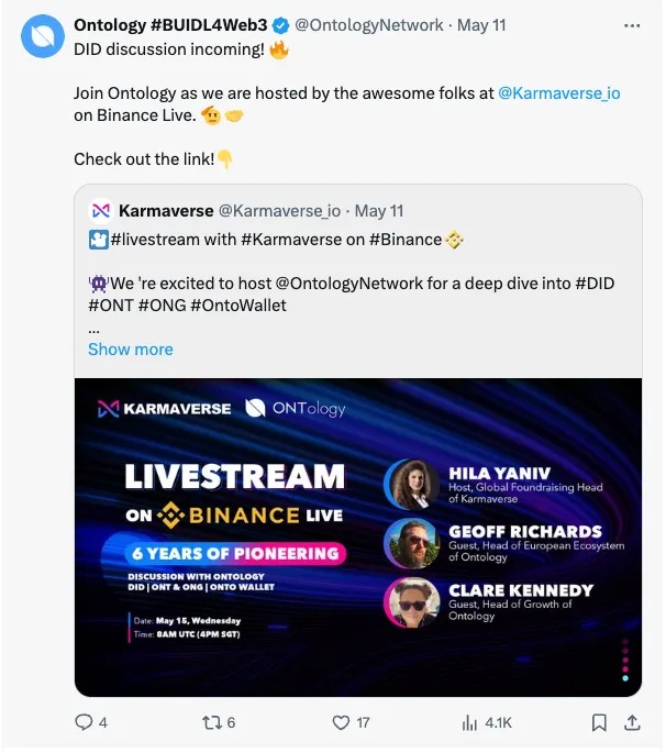 • Binance Live Session with Karmaverse: We joined Karmaverse on Binance live, sharing insights and updates about Ontology’s advancements.