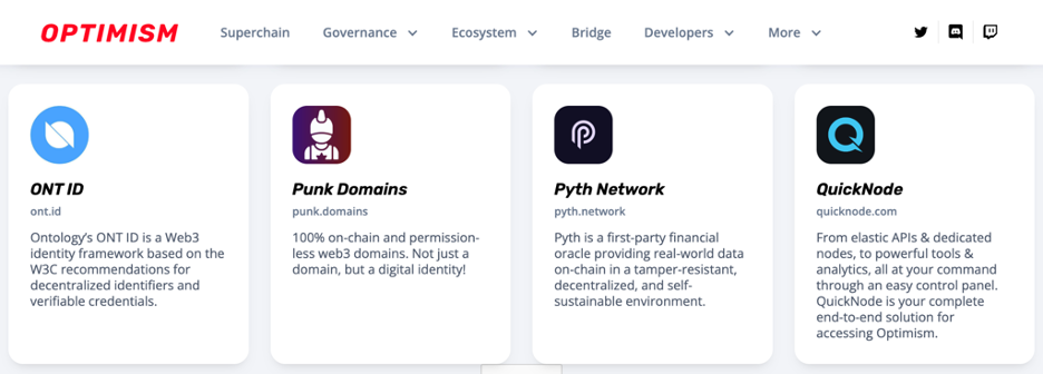 ONT ID listed on the Optimism Ecosystem Page as a DID provider.