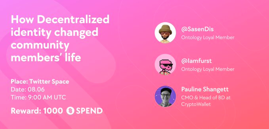 ● Ontology Loyal Members Sasen and Furst joined a TwitterSpace with Crypto Wallet, talking about “How Decentrilized Identitity changed community members’ lives.”