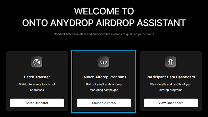 -On the Organizer dashboard page, click “Launch Airdrop” to open the “Launch Airdrop Programs” page.