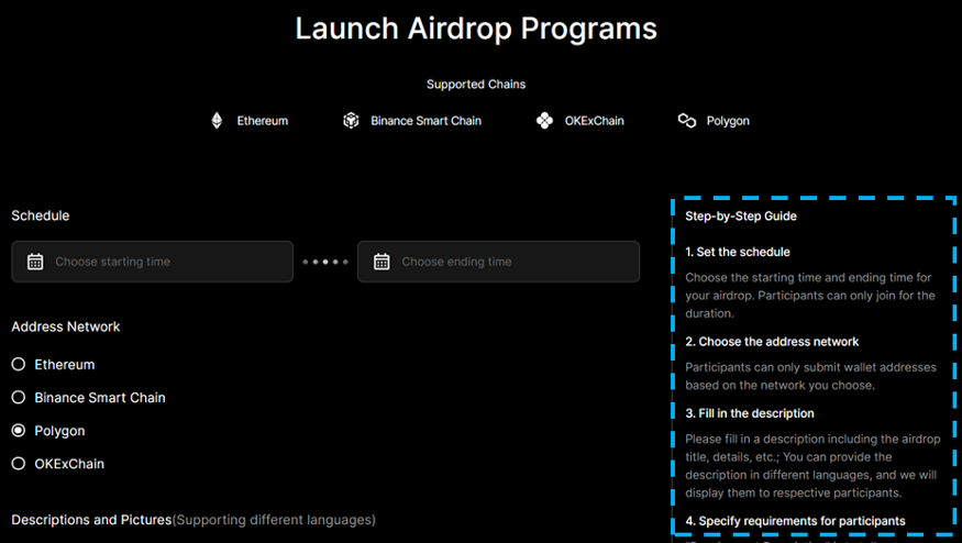 -On the “Launch Airdrop Programs” page, refer to the “Step-by-Step Guide” on the right.