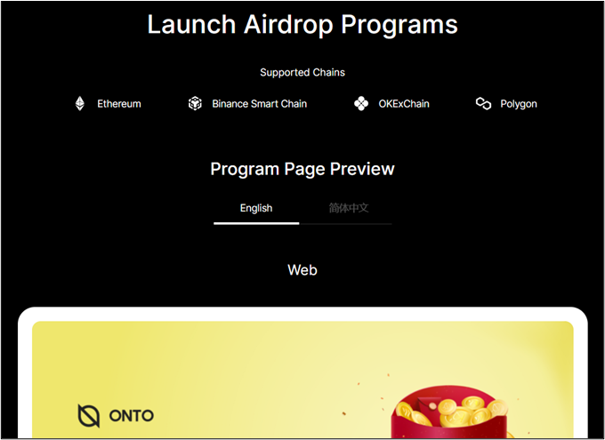 ONTO Anydrop Organizer can conduct batch transfers and customizable airdrops to qualified participants. Supported chains: Ethereum, Binance Smart Chain, OKExChain and Polygon.
