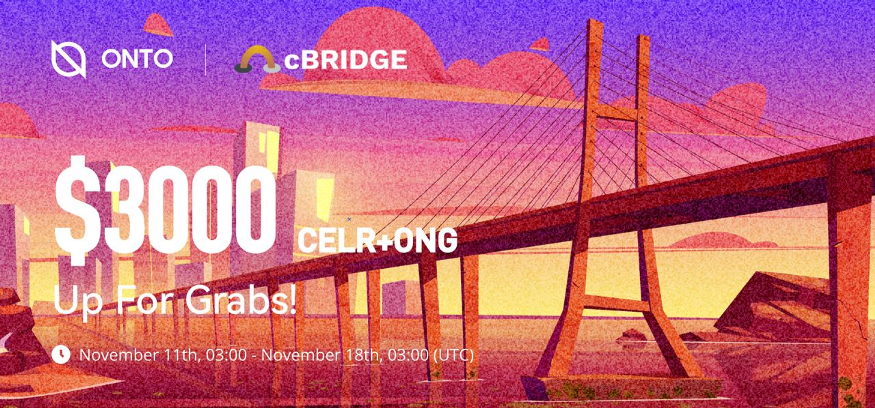 - ONTO hosted a campaign with cBridge. The first 250 participants and top 50 participants who stake the most will receive the highest tier of rewards. Participants who meet certain conditions will have the chance to enter a lottery to win ONG. The event is in progress, and will end at 11:00 (Singapore time) on November 18th.