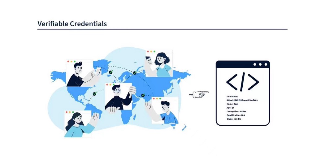 Discrete IDs linked across various ecosystems can have multiple delegates and attributes. With verifiable credentials, entities (i.e. individuals, enterprises, institutions, devices) can make and verify claims related to data ownership, access rights, and validation.