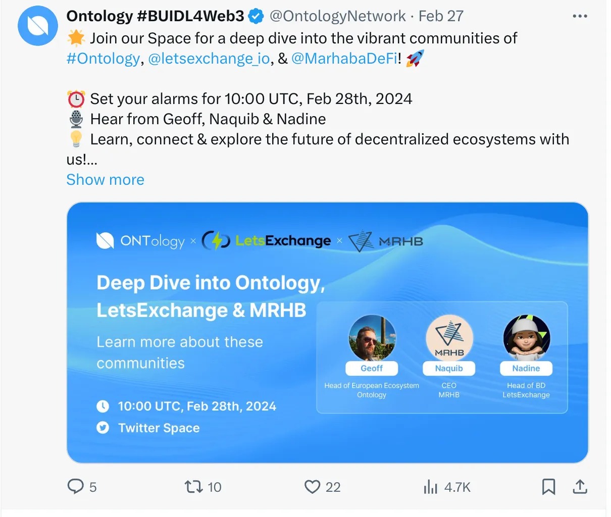 - Telegram Discussion on ONT and ONG: Led by Ontology Loyal Members, a comprehensive guide to understanding Ontology’s dual-token system was discussed, enriching the community’s knowledge.