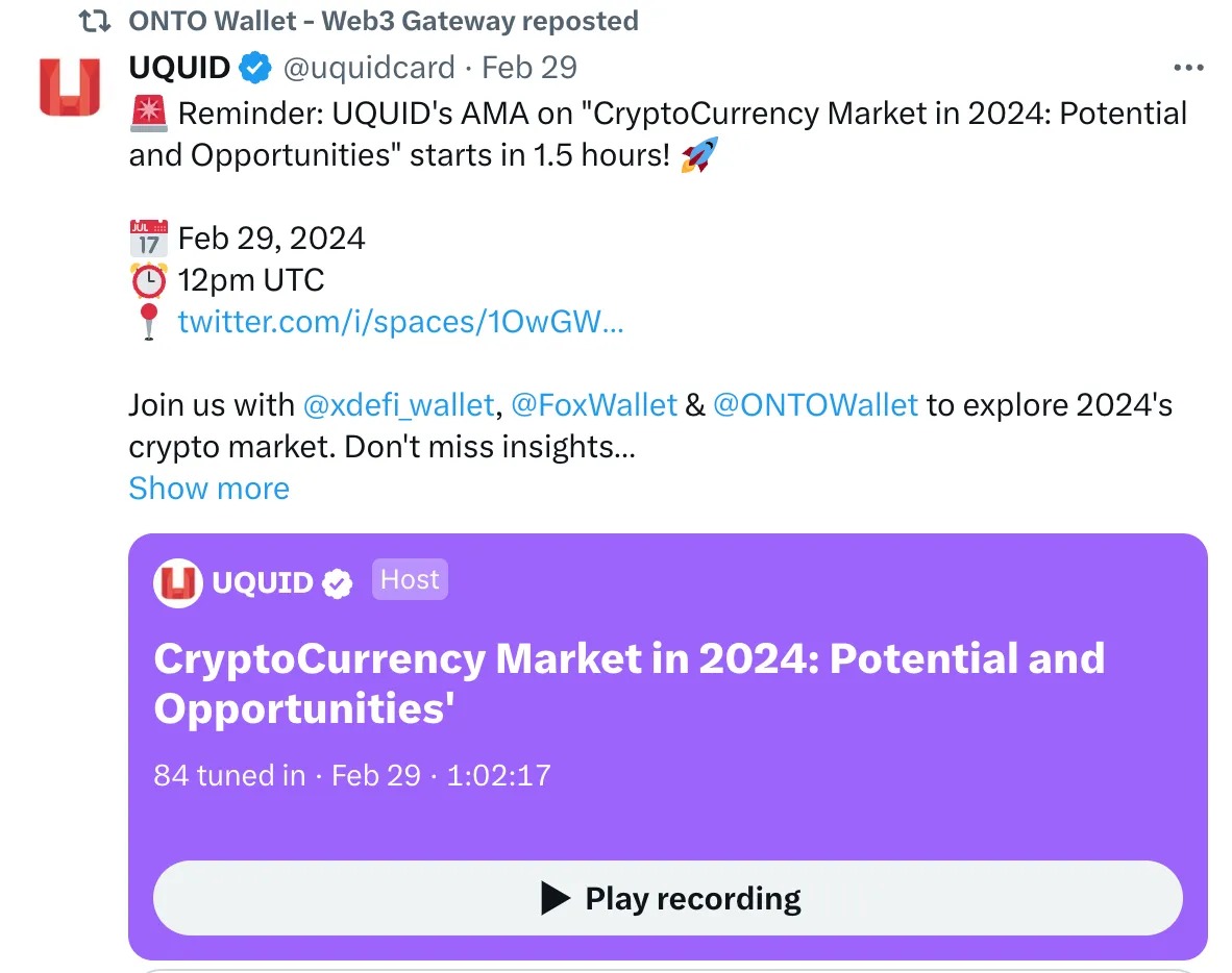 - ONTO in UQUID’s AMA: Participating in UQUID’s AMA, ONTO shared valuable insights and updates with the community.