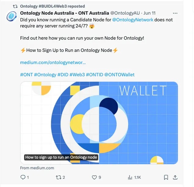- Ontology Australia Node: We’re excited to announce that Ontology Australia node now has its own channel! Follow for updates and learn more about node staking on Ontology.